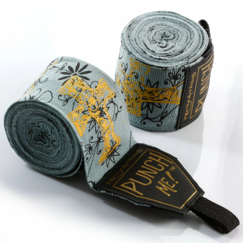 PUNCH ME!™ GOLD CROSS STRETCH BOXING HAND WRAPS – 4M